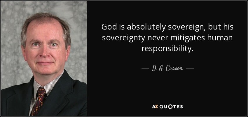 1. We should never use God’s sovereignty as an excuse for our own shortcomings. I should never say simply that, “God wanted me to do that because that is how He made me.” God has never promised to work in the heart of others just to make up for our struggles. I must continue to work to learn and grow.